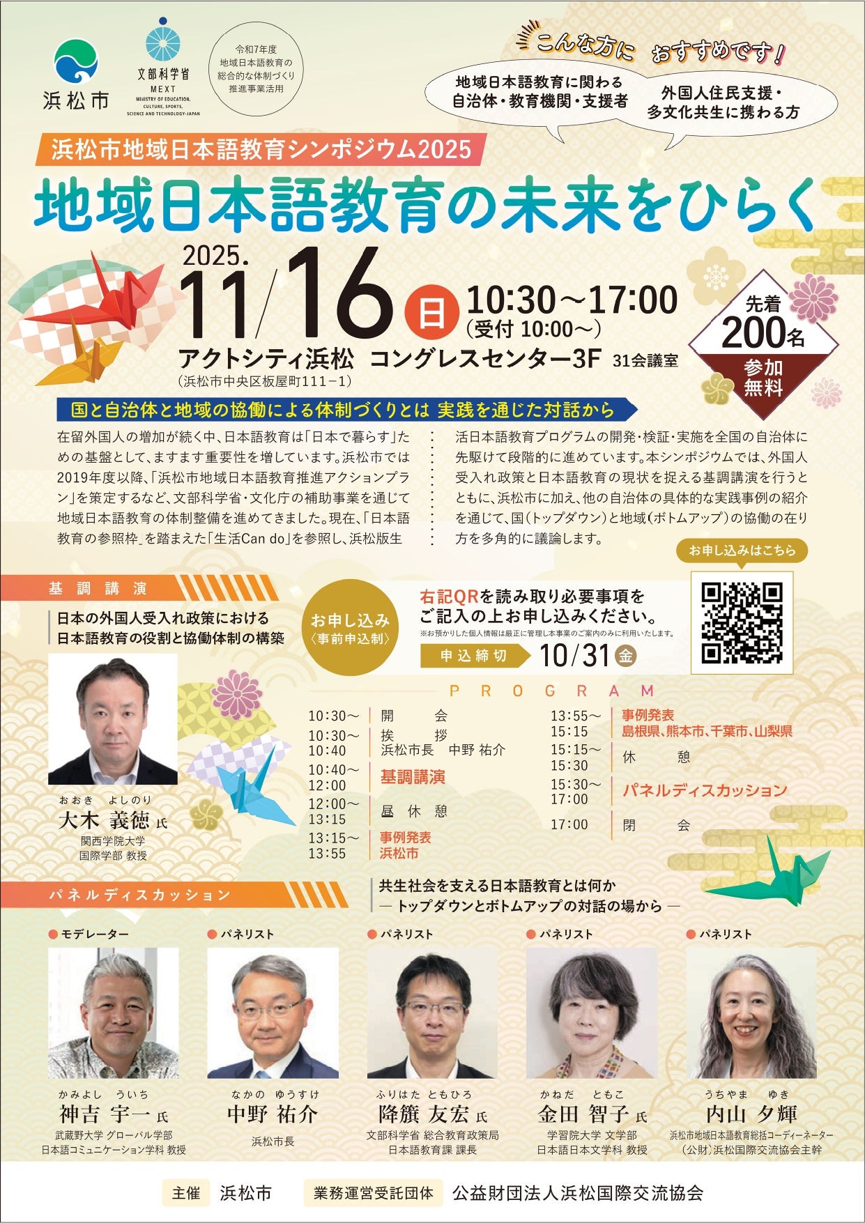 浜松市地域日本語教育シンポジウム2025「地域日本語教育の未来をひらく~国と自治体と地域の協働による体制づくりとは 実践を通じた対話から~」 開催案内