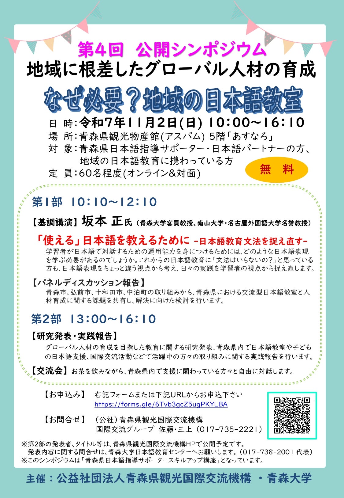 公開シンポジウム 地域に根差したグローバル人材の育成「なぜ必要?地域の日本語教室」開催案内