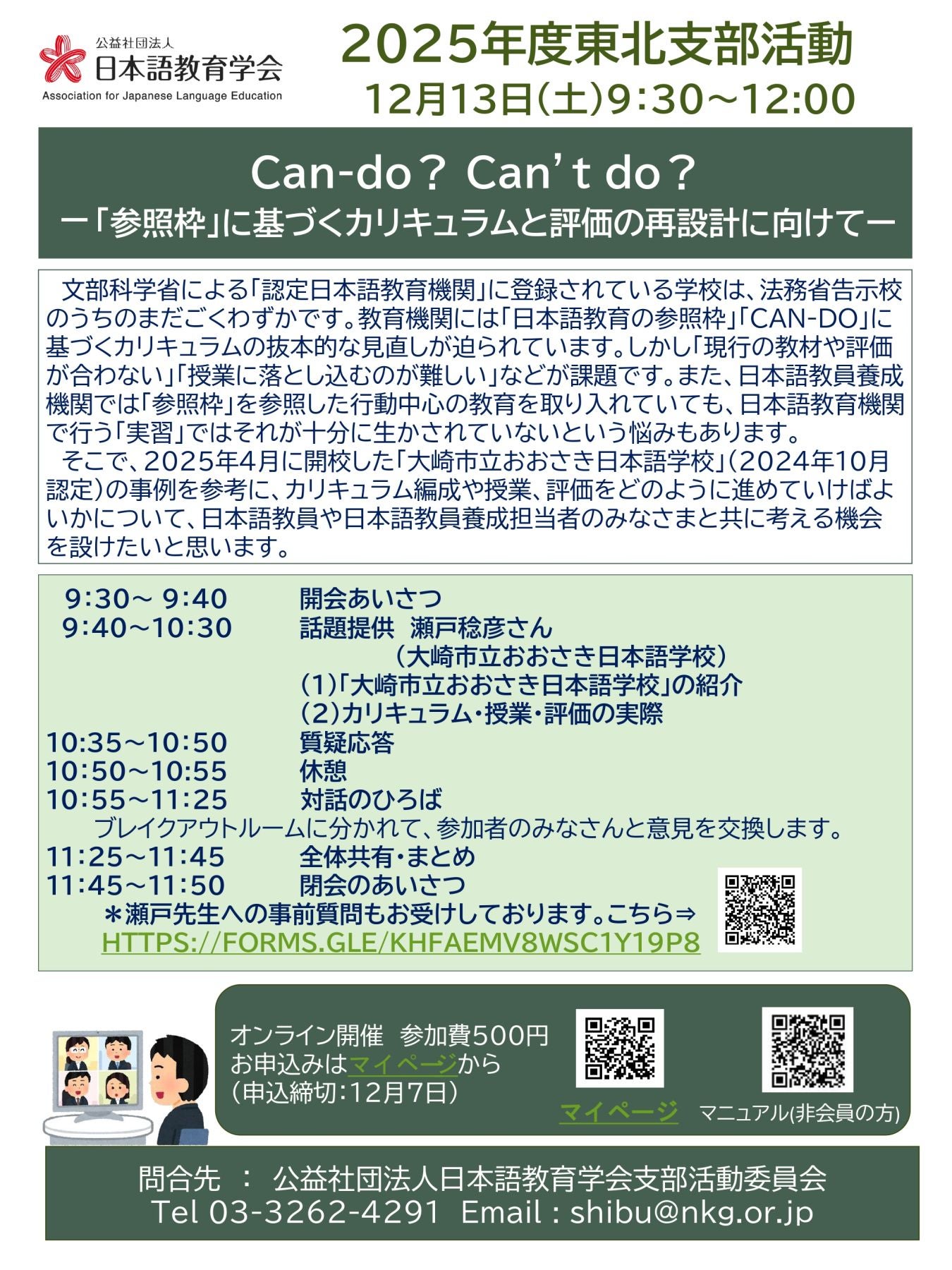 *文部科学省による「認定日本語教育機関」に登録されている学校は、法務省告示校のうちのまだごくわずかです。教育機関には「日本語教育の参照枠」「CAN-DO」に基づくカリキュラムの抜本的な見直しが迫られています。しかし「現行の教材や評価が合わない」「授業に落とし込むのが難しい」などが課題です。そこで、2025年4月に開校した「大崎市立おおさき日本語学校」(2024年10月認定)の事例を参考に、カリキュラム編成や授業、評価をどのように進めていけばよいかについて、日本語教員や日本語教員や日本語教員養成担当者のみなさまと共に考える機会を設けたいと思います。