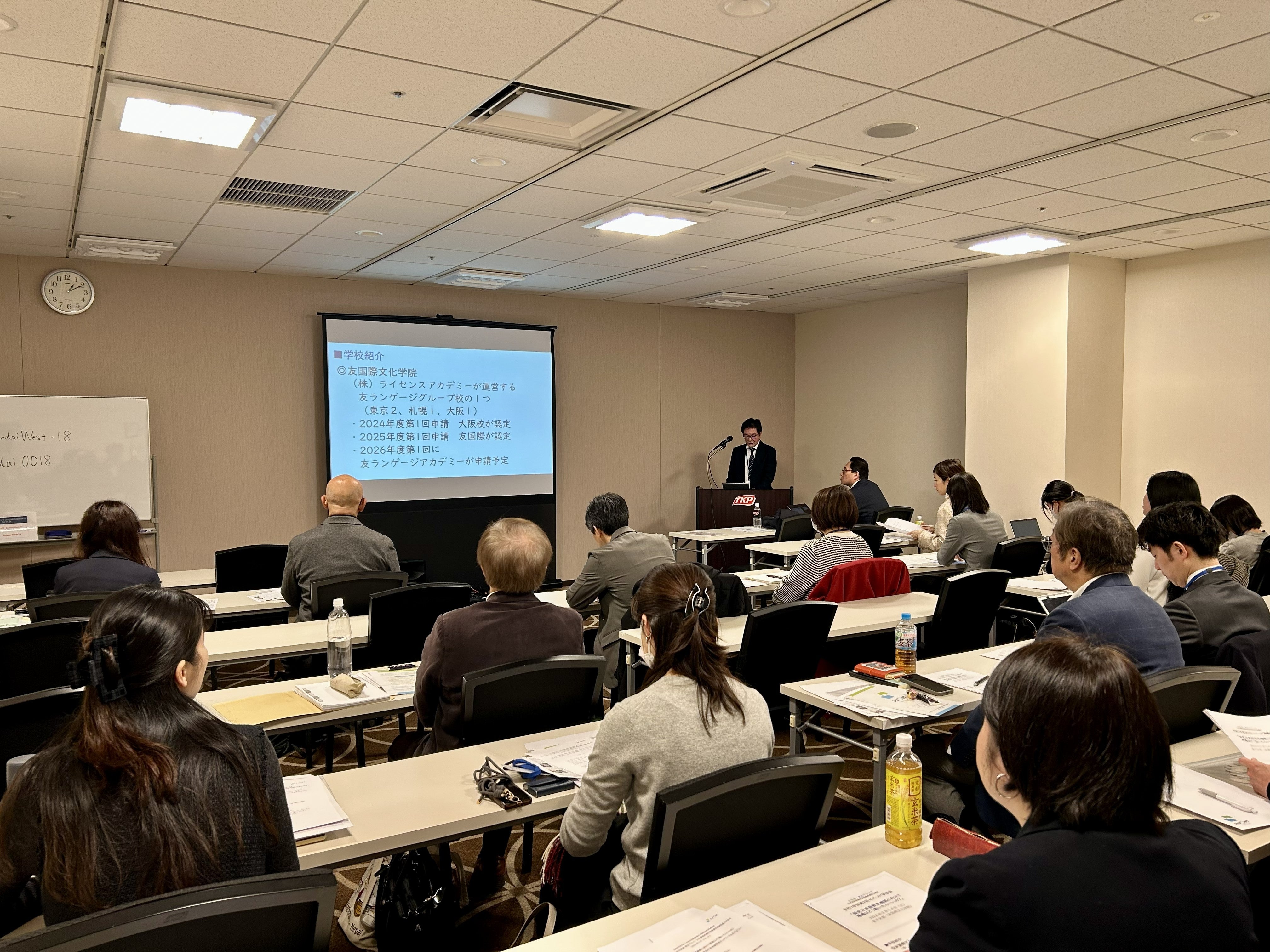 令和7年度第2回研修会が、2026年2月14日(土)に仙台(TKPガーデンシティPREMIUM仙台西口)で開催されました。今回は、「認定日本語教育機関に向けて現場はどう動いたらいいのか―学校を超えて繋がり、東北の日本語学校ネットワークを広げよう!―」をテーマに新制度の動きの中で、日本語学校がどのように取り組みを進めていくべきかについて理解を深めるとともに、東北地域の日本語学校間の連携を強化することを目的として実施されました。当日は、東北地域の日本語学校関係者を中心に21名の参加があり、講演とグループでの意見交換を通じて活発な情報共有が行われました。
